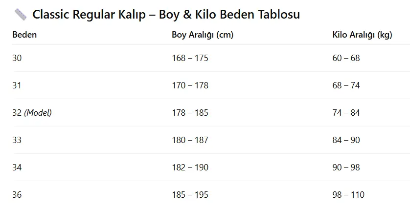 Ne çok dar ne çok bol… Tam kararında, orta regular kalıp ile kusursuz bir duruş sunar. Üzerinize oturuşu ve formu gerçekten muazzam!