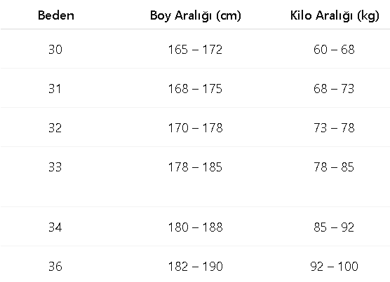 📏 Beden Aralığı: 30 – 31 – 32 – 33 – 34 – 36