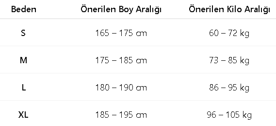 S – M – L – XL beden seçenekleriyle sunulmaktadır.